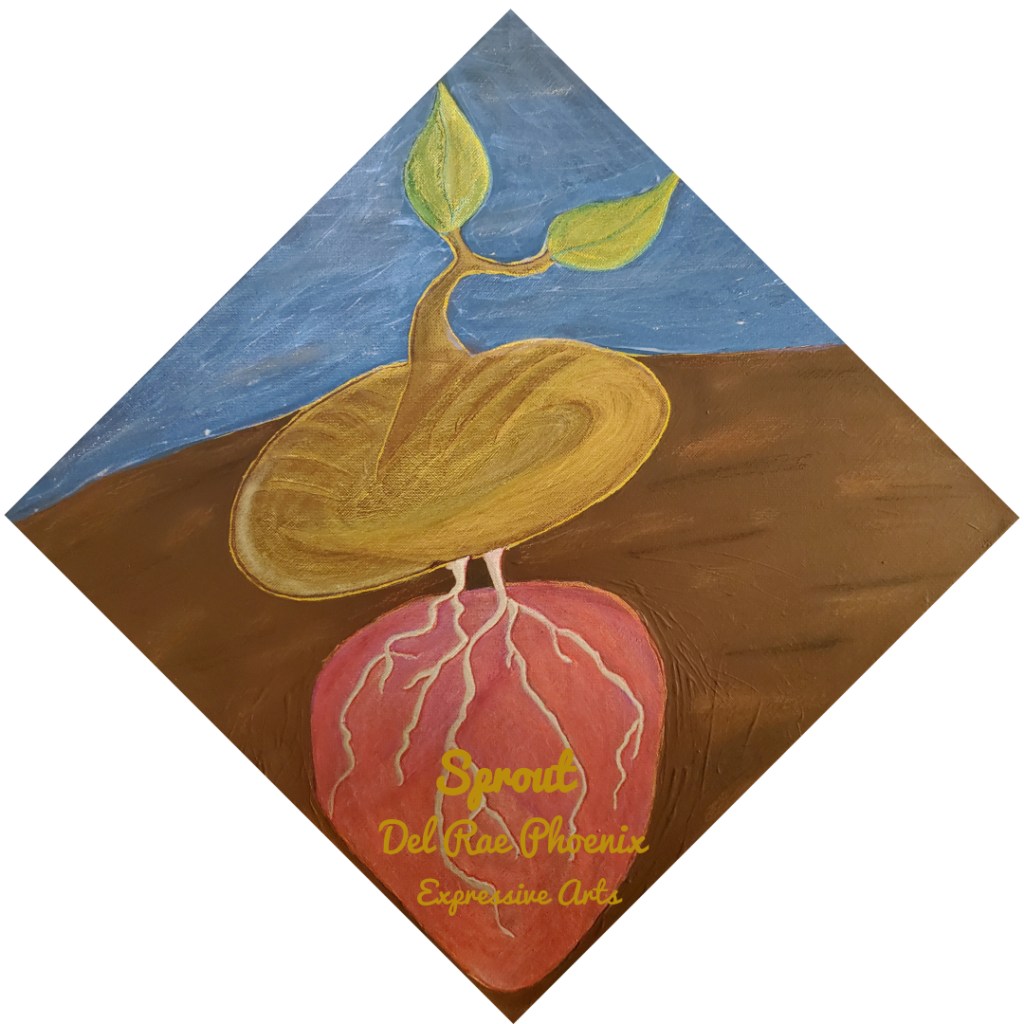 Beltane is the midpoint between the Winter Solstice and Spring Equinox. It is the time that we begin to see the first indications of Spring, with bulbs sprouting and new litters of many species of animals being born. In keeping with the theme of personal growth, the painting Sprout represents the new growth that stems from the seeds of wisdom that are planted in the deep reflection of the winter months, with the roots growing into veins and arteries that feed and circulate love.