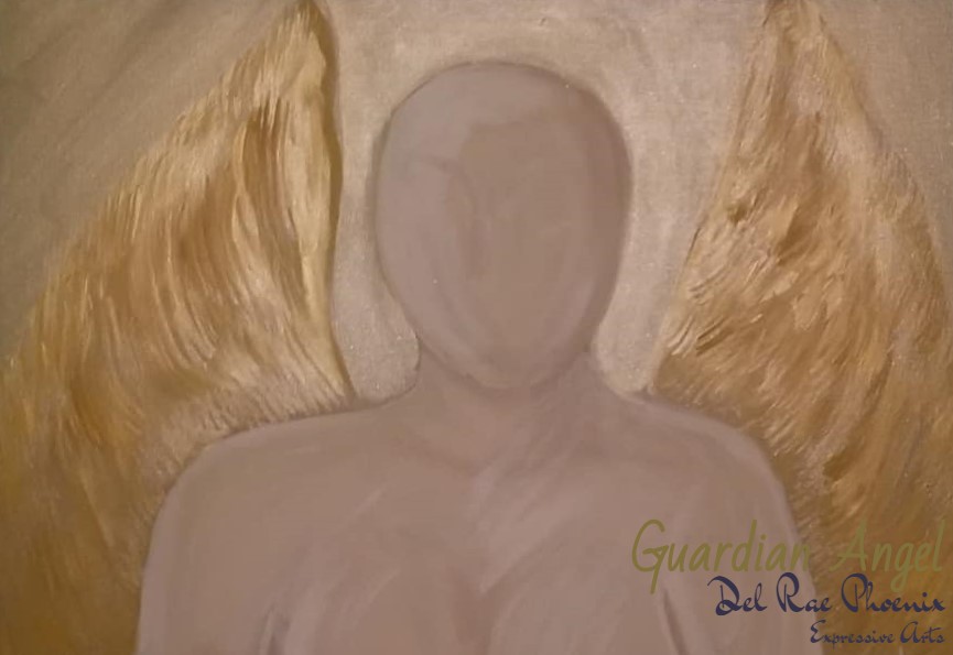 Expansion series on a 20-year-old painting, working on Trauma-related nightmares and post-traumatic growth. Mixed media collage with Acrylic, original poetry and feathers. Accompanying poetry can be found at Musings here. Prints of Guardian Angel available here.
