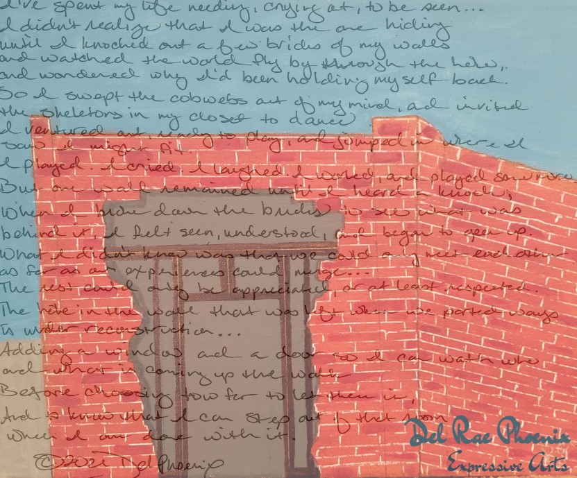 Oil Painting on Canvas, superimposed with poem. Hole in the Wall. Poem can be found in Musings here.