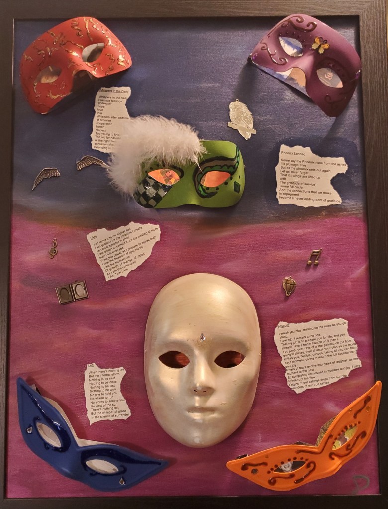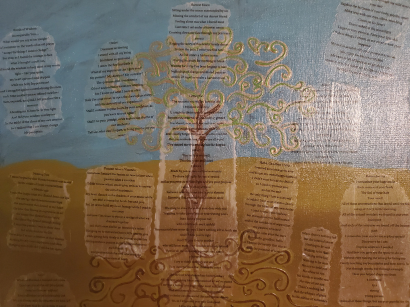 My current pieces combine poetry, painting, and collage that represent various aspects of my life story.